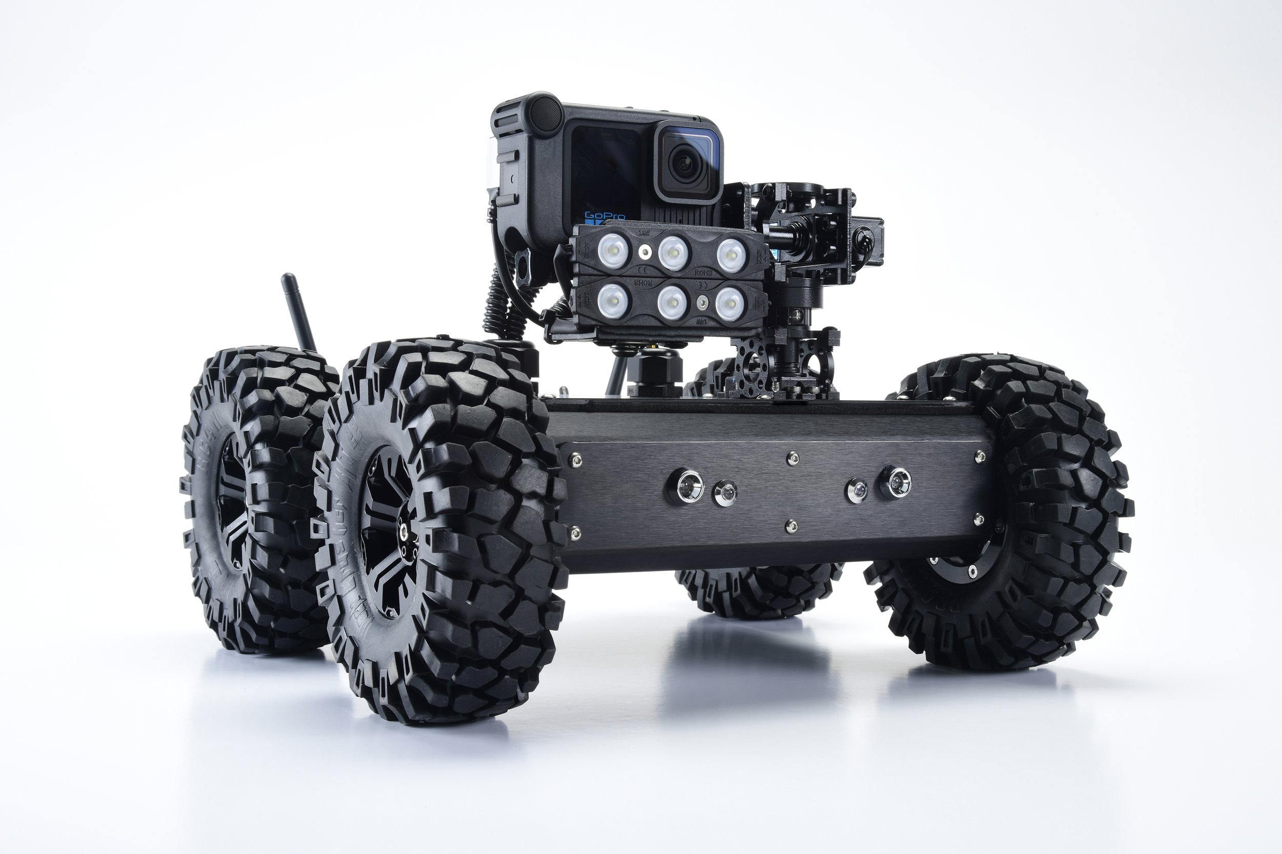 A High Definition GoPro 13 is mounted to a rugged Pan Tilt mechanism, bolted to the deck of an aircraft-grade aluminum chassis. Combined with 10x onboard, Ultrabright LED lights, this thing is ready for battle. The small footprint of 12.75” W x12” L and low profile allows insertion into openings as small as 13” W x 10” H.